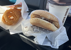 サイドメニューはオニオンリングを注文。バーガーにハッシュドポテトが入っていたこともあり、バランスの良い味わい。油っぽさが控えめなので、最後まで美味しくいただけました。